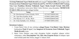 HASIL PENJARINGAN BAKAL CALON DIREKTUR POLITEKNIK NEGERI MEDIA KREATIF PERIODE 2026-2030